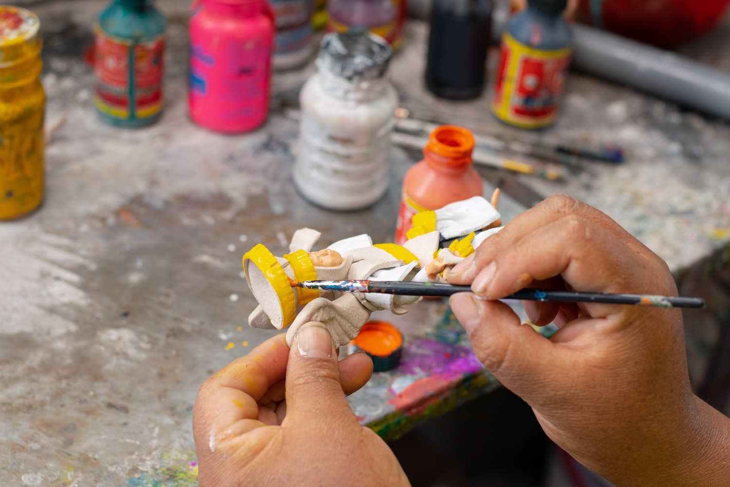 El retablo ayacuchano es una manifestación artística tradicional del Perú, caracterizada por su minucioso y colorido trabajo artesanal. Consiste en una caja de madera con puertas que, al abrirse, revela escenas religiosas, costumbristas o festivas, elaboradas con pequeñas figuras de pasta de yeso o maguey. La elaboración de un retablo en un taller tradicional comienza con el diseño y construcción de la caja de madera, que luego es decorada con vivos colores y patrones. Los artesanos moldean y pintan a mano cada figura, cuidando cada detalle para dar vida a las escenas. Este proceso, transmitido de generación en generación, refleja la riqueza cultural y la habilidad artística de la región de Ayacucho.